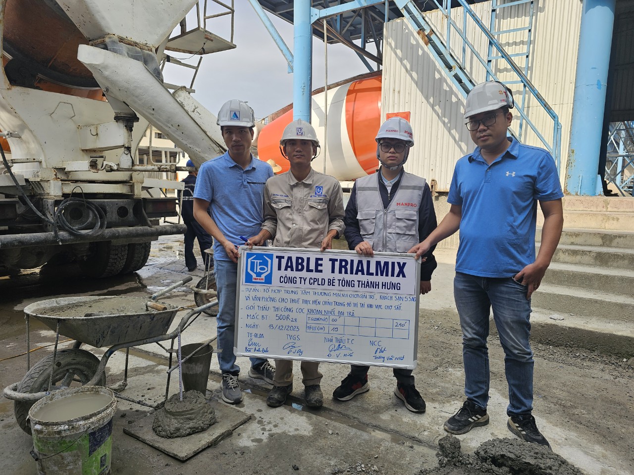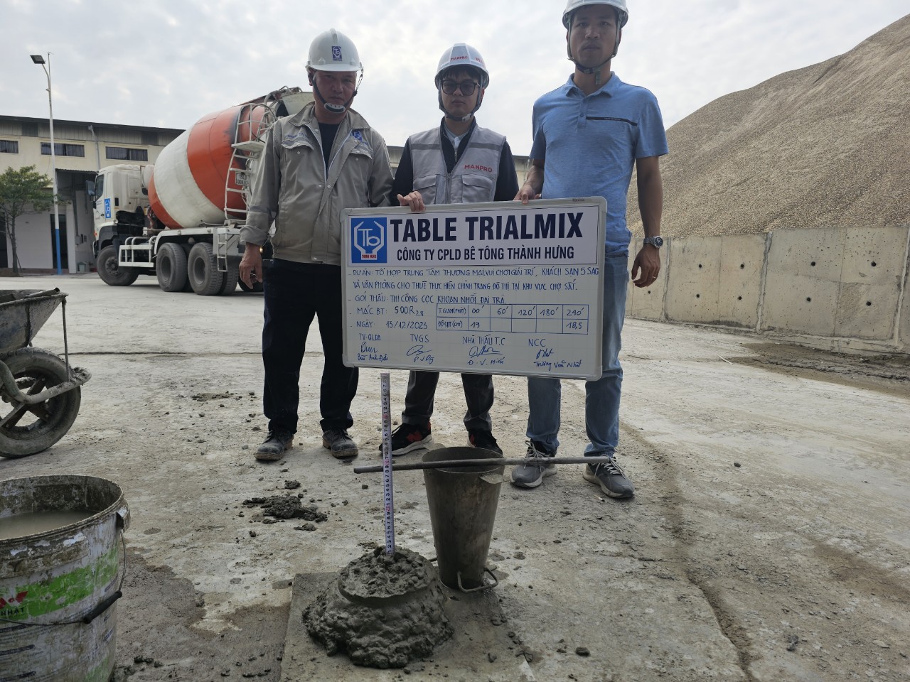 Ngày 13.12.2023 công ty TNHH tập đoàn Delta - nhà thầu thi công cùng tư vấn quản lý dự án công ty cổ phần tư vấn quản lý dự án xây dựng Manpro, chủ đầu tư - công ty cổ phần May - Diêm Sài Gòn và nhà thầu chính - công ty cổ phần đầu tư xây dựng TNCons Việt Nam tiến hành trialmix thi công cọc khoan nhồi đại trà dự án tại trạm bê tông Thành Hưng.